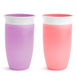 Munchkin Spill Proof Miracle 360 Sippy Cups for Toddlers 1-3, 10 Ounce, 2 Pack, Pink/Purple Munchkin Spill Proof Mirac